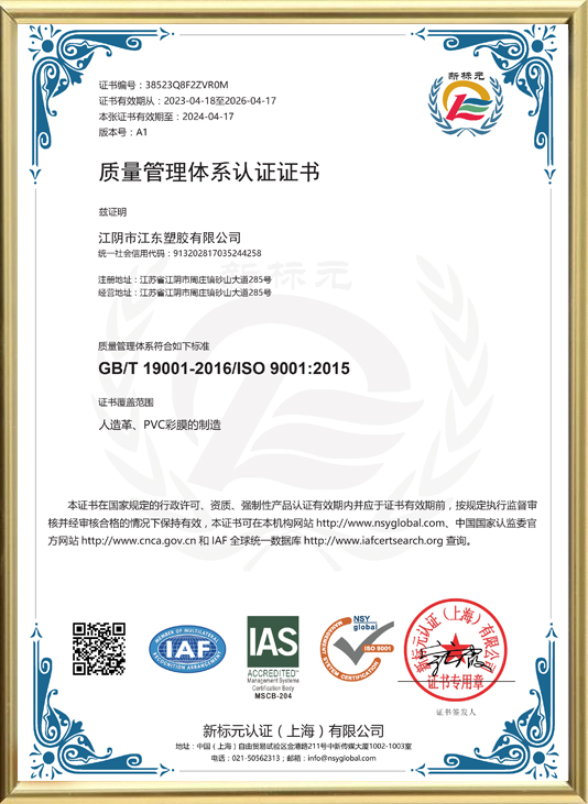 Jiangyin Jiangdong Plastic Co., Ltd. to firma specjalizująca się w produkcji i dostawie skóry wytłoczonej w PVC. Jako jeden z liderów branży mamy zaawansowane zespoły produkcyjne i zespoły techniczne zajmujące się dostarczaniem klientom produktów wysokiej jakości i doskonałych usług. Nasza skóra wytłoczona przez PCV ma różne opcje tekstury, silną odporność na zużycie, łatwe czyszczenie i opiekę itp. Jest szeroko stosowana w produkcji mebli, wnętrzach samochodowych, akcesoriach odzieżowych i innych polach. Jednocześnie zwracamy uwagę na ochronę środowiska, przyjmujemy przyjazne dla środowiska procesy produkcyjne i surowce oraz jesteśmy zaangażowani w promowanie zrównoważonego rozwoju.